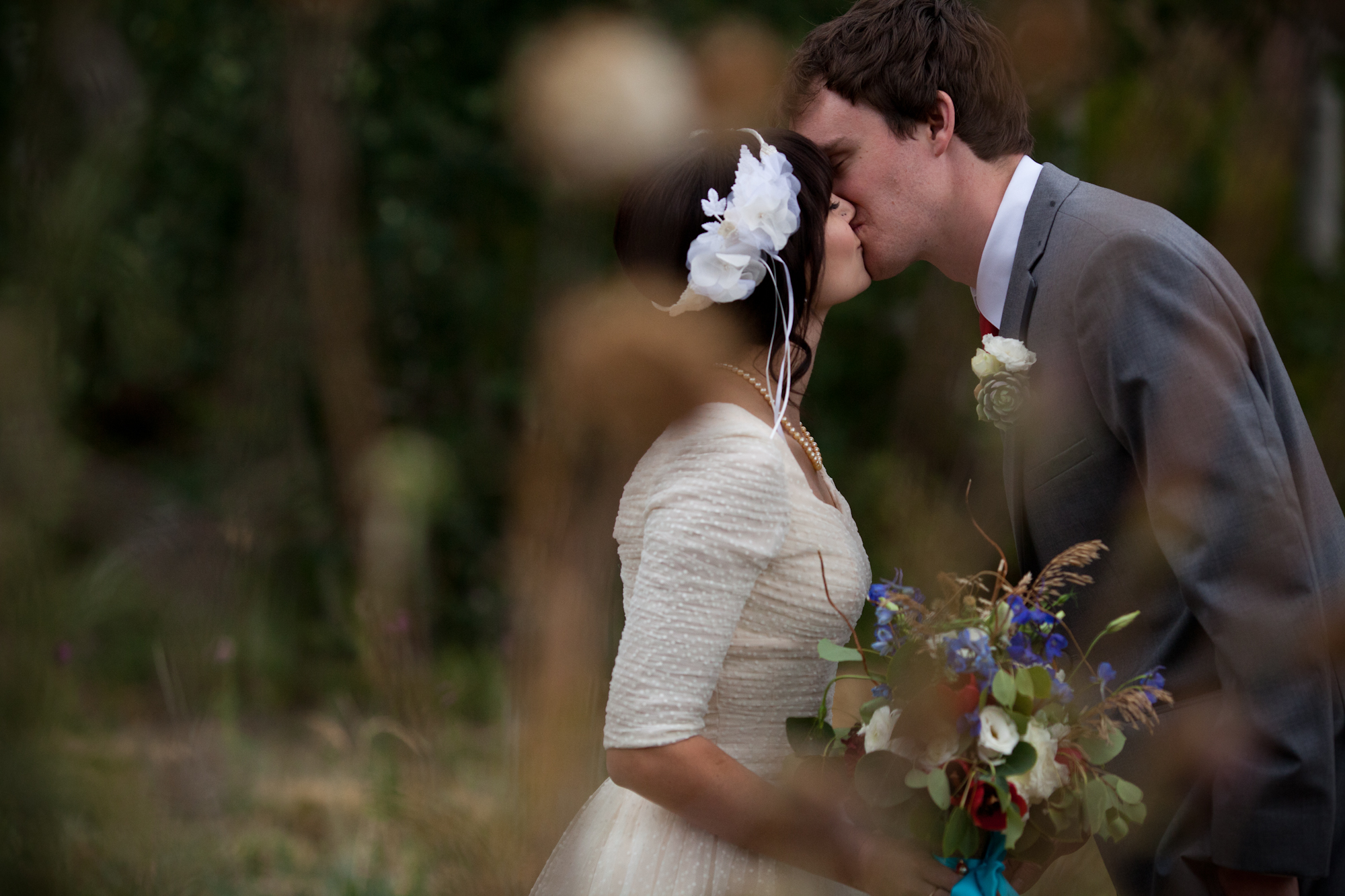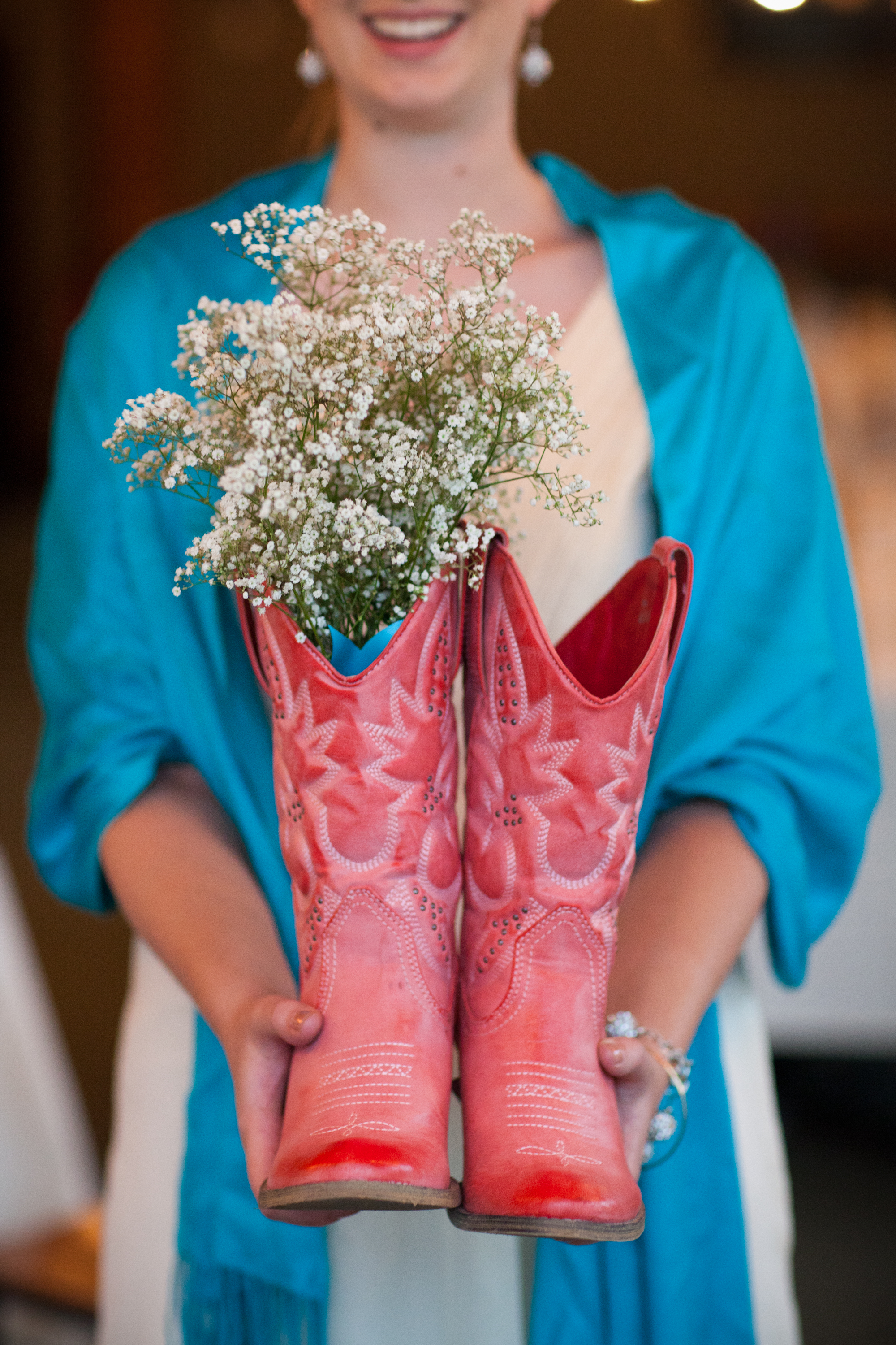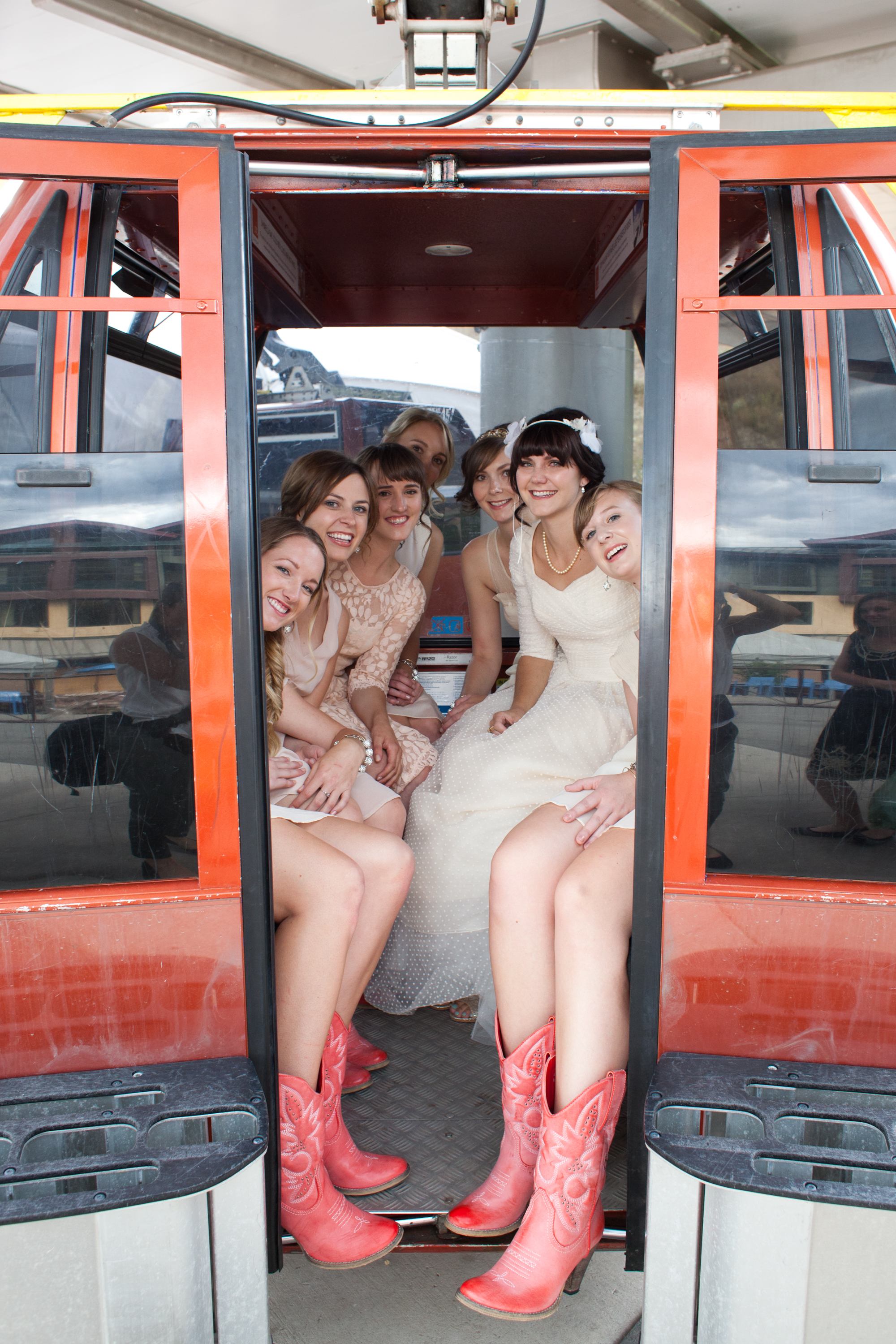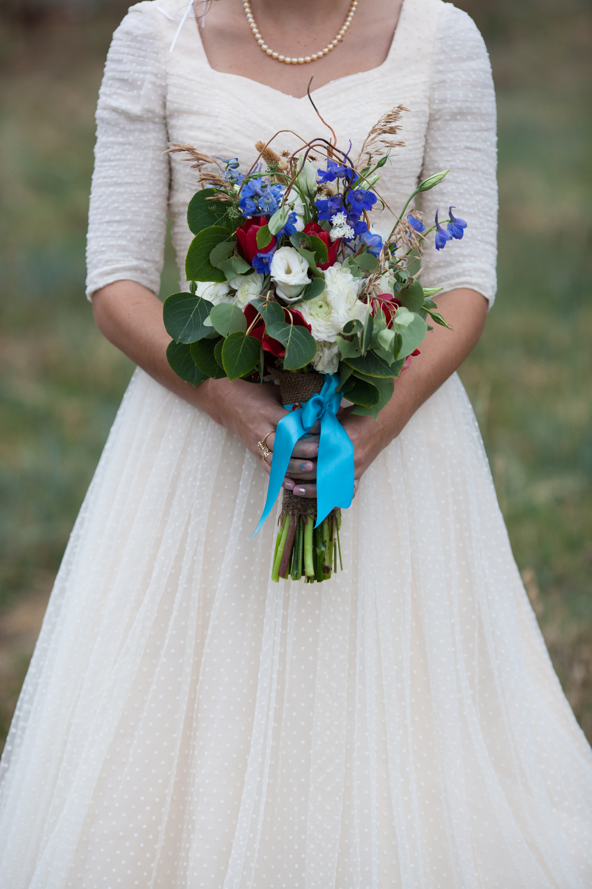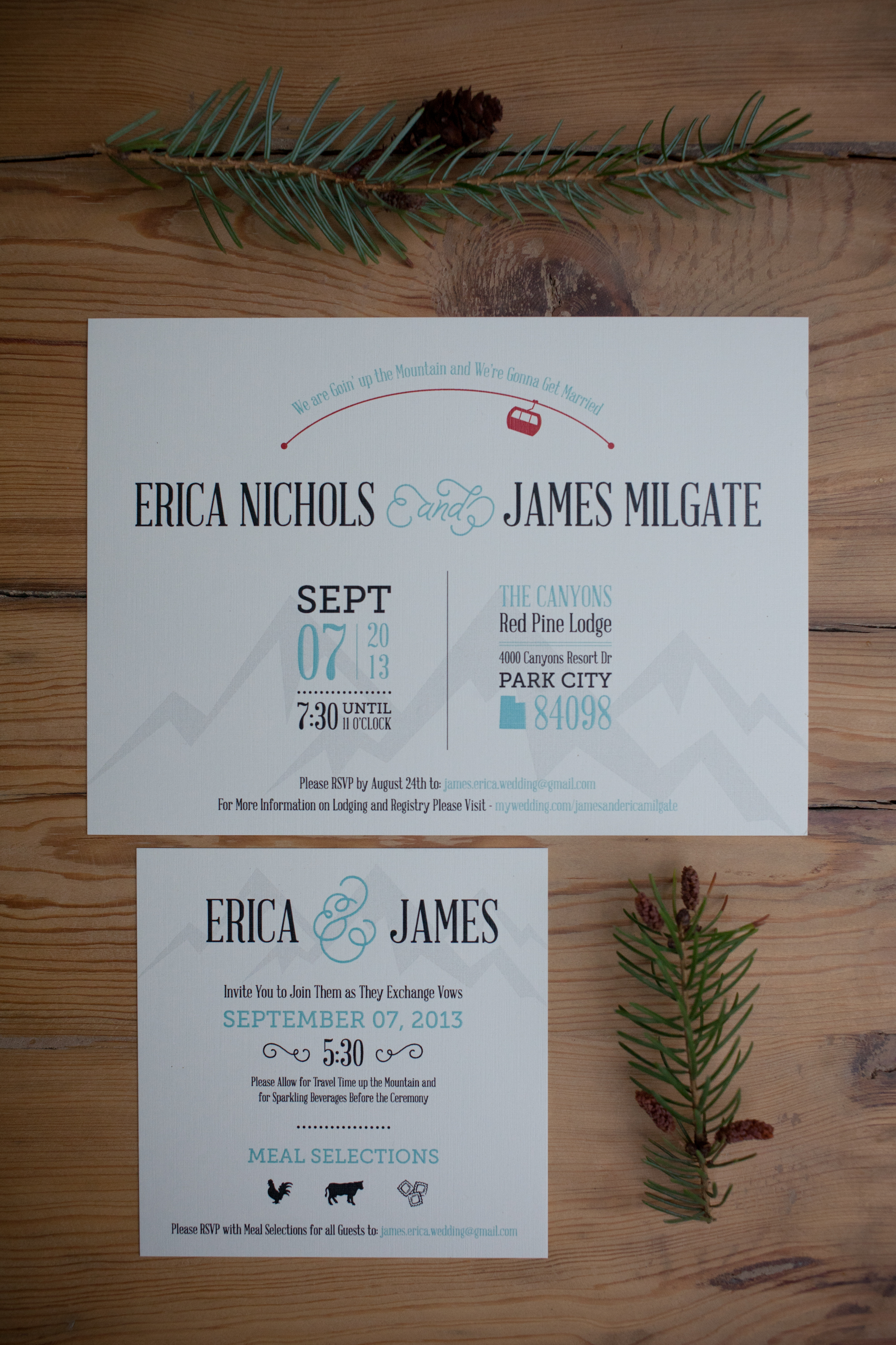 Turquoise and red were the colors for this natural and vintage inspired wedding in the mountains. A severe thunder storm didn’t stop guests from getting up to the venue via gondola chair lift and partying into the wee hours of the morning. The rainy day only added to the ambiance; the reception tent oozed with romance as the paper lantern and bistro-lit ceiling illuminated the night. Cheers to this adorable couple!