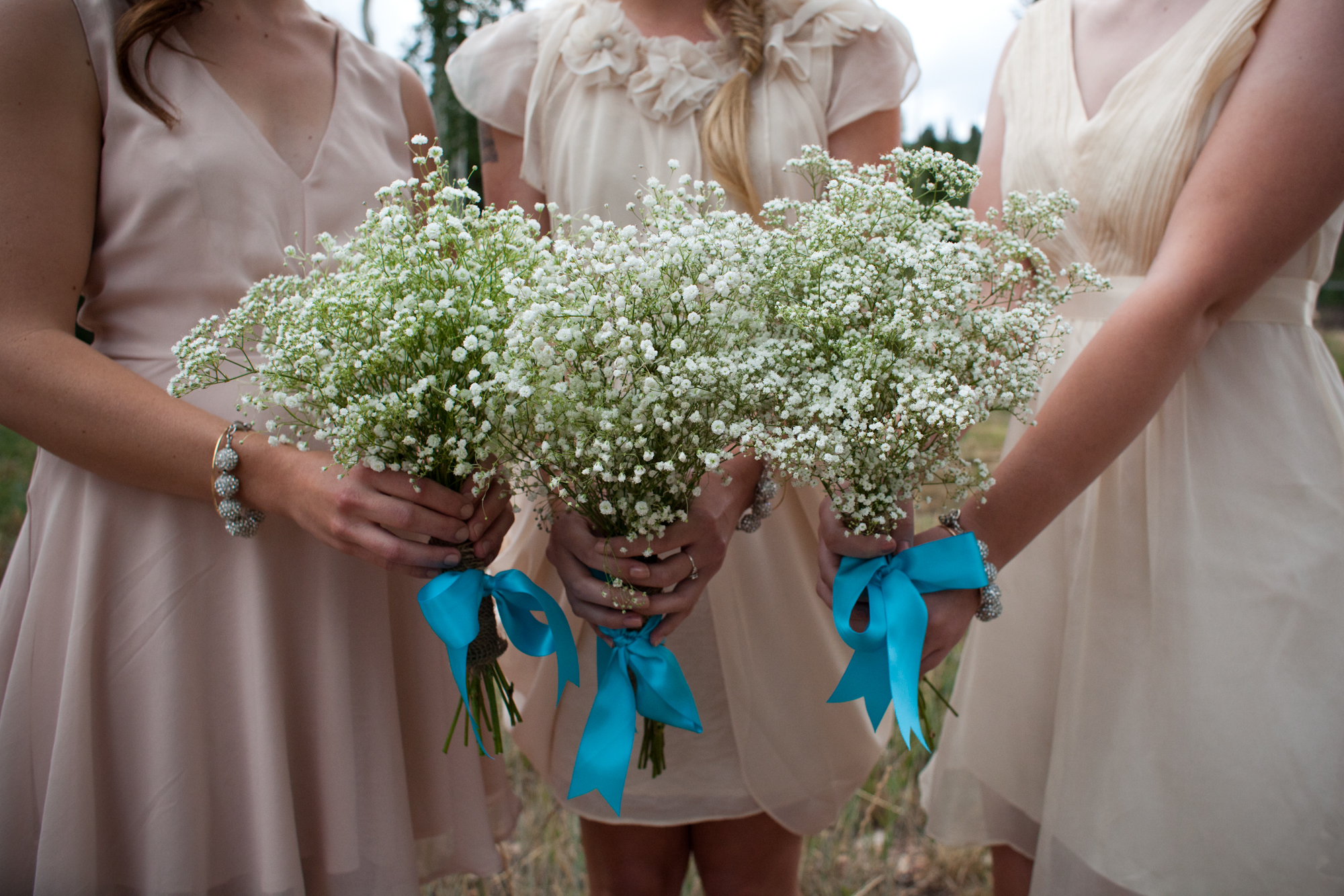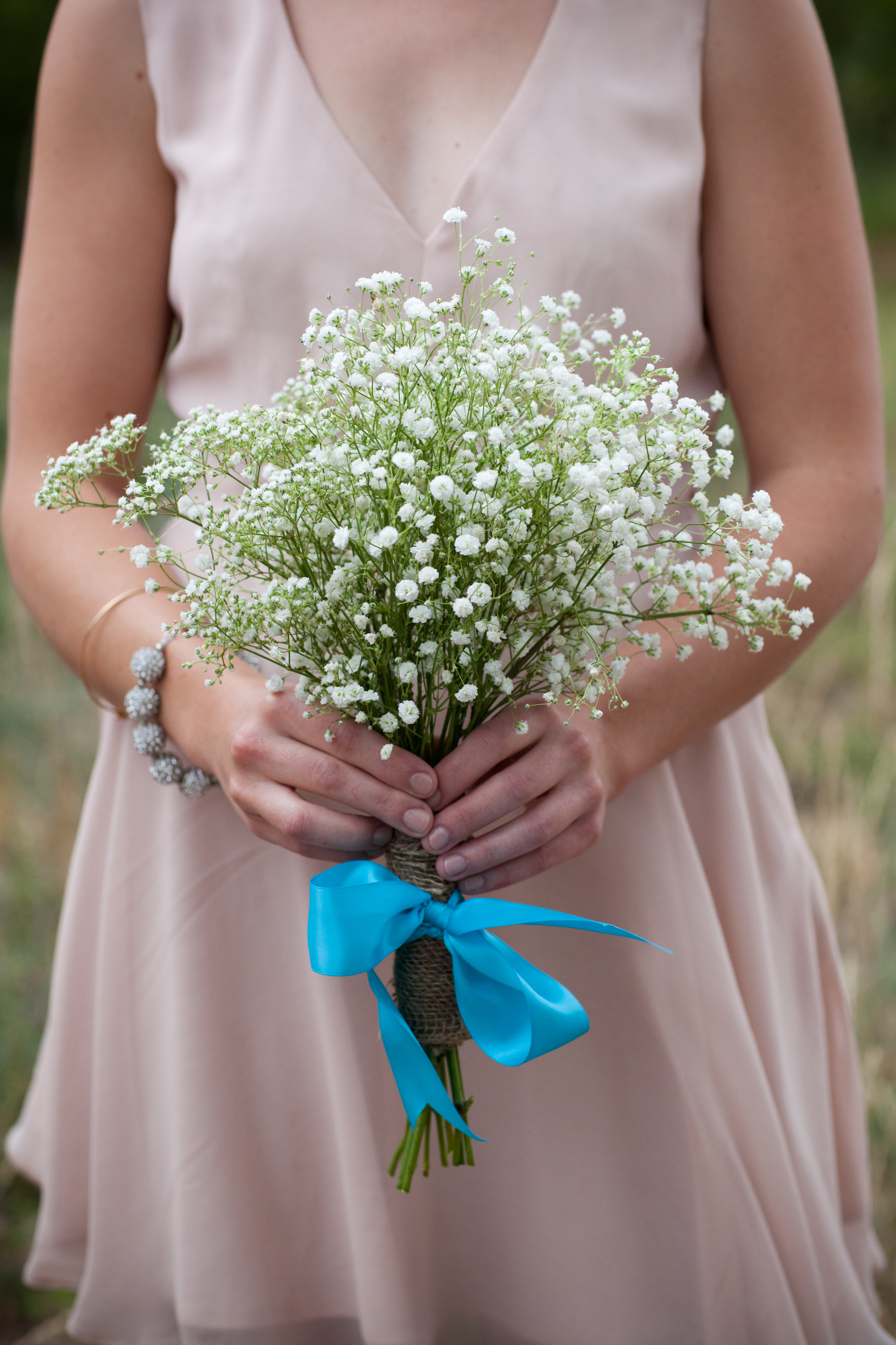 The bride wanted her bridesmaids to hold bouquets, but didn’t want them to break the bank. These baby’s breath bouquets were an excellent solution.