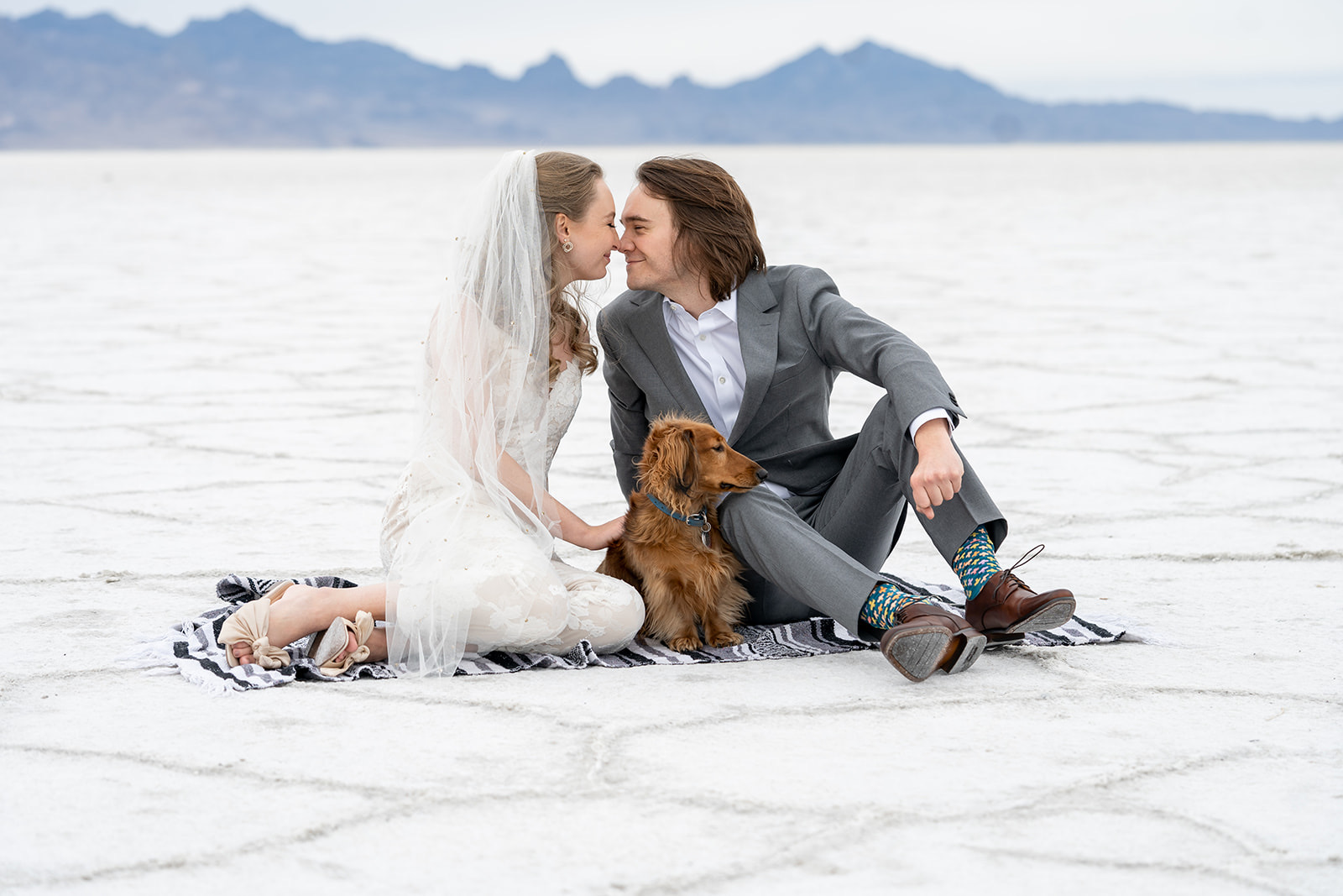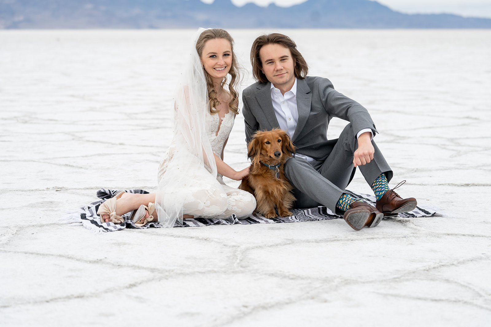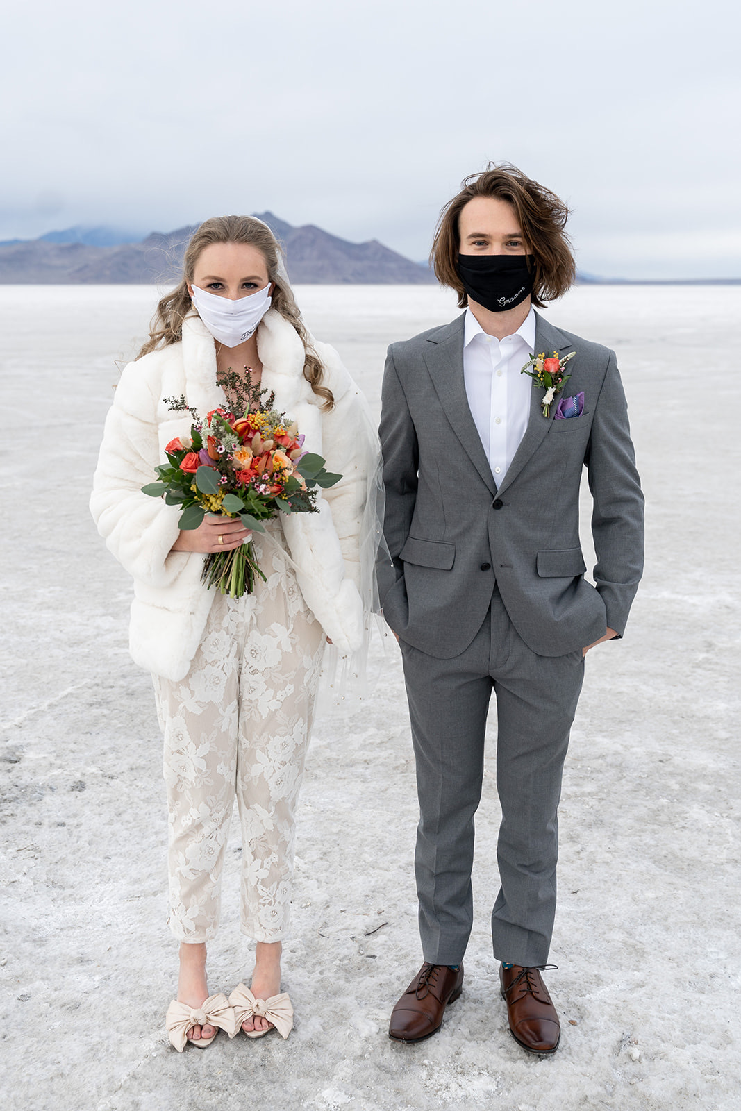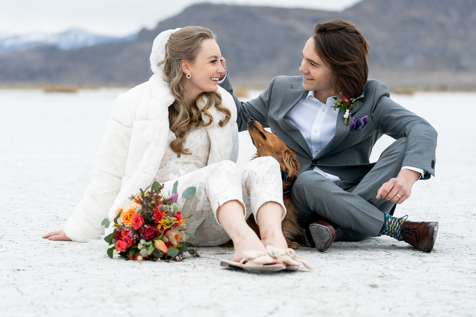 Charcuterie tray and mini wedding cake from @sweetsandcheese, craft cocktails from @thebartendersbox, lunch and dinner by @pcprovisions, bouquet, boutonnieres, and other fun touches by @harvestmoonevents. Hair and makeup by @lesleylind and wedding elopement at the Salt Flats captured beautifully by @kacilouphotography