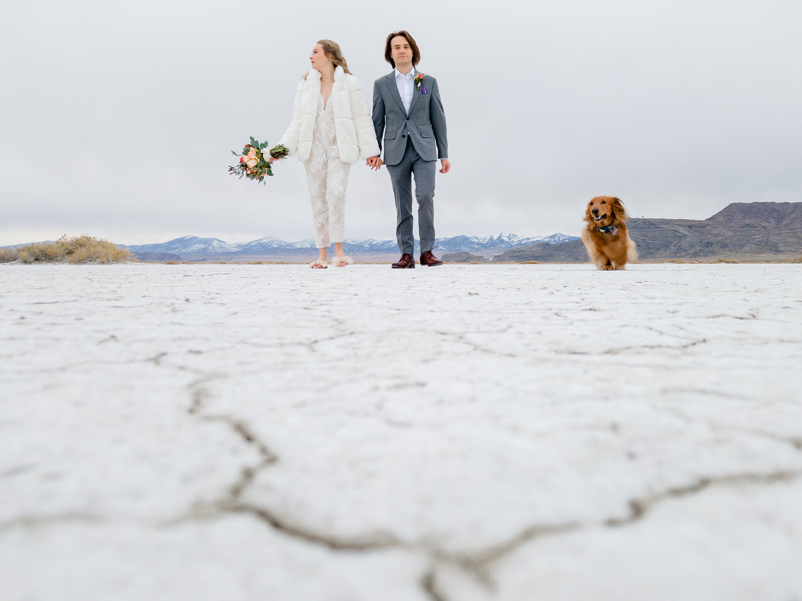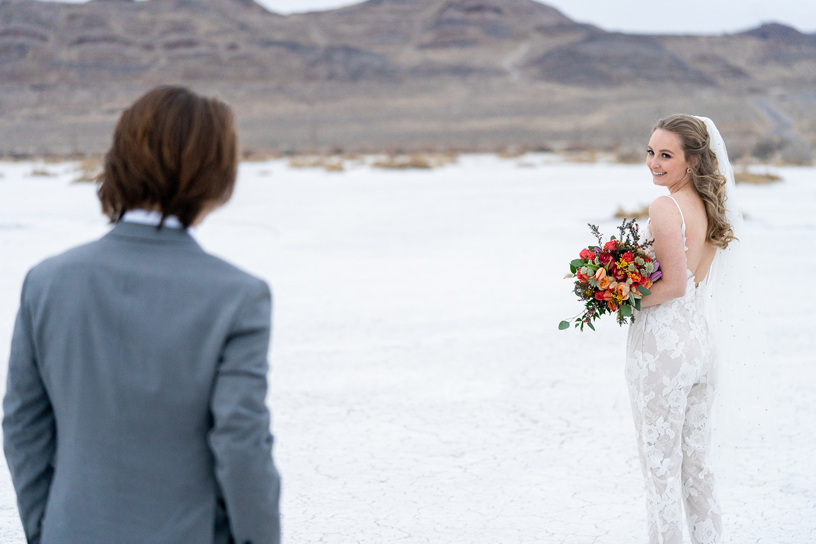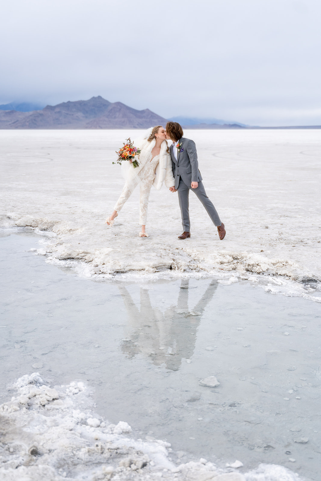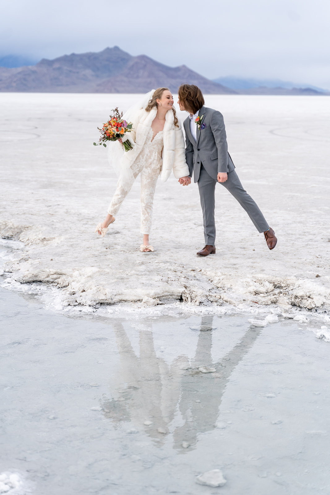 Charcuterie tray and mini wedding cake from @sweetsandcheese, craft cocktails from @thebartendersbox, lunch and dinner by @pcprovisions, bouquet, boutonnieres, and other fun touches by @harvestmoonevents. Hair and makeup by @lesleylind and wedding elopement at the Salt Flats captured beautifully by @kacilouphotography